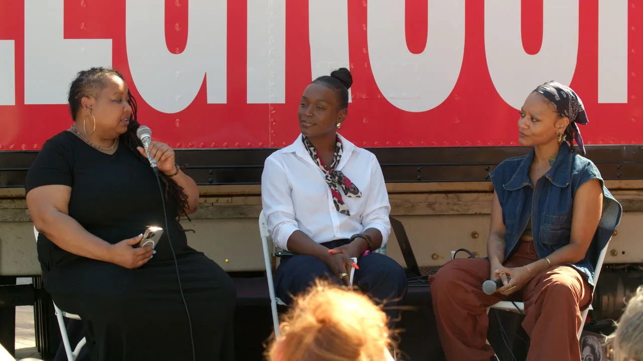 The panel was hosted by fayemi shakur, writer and City of Newark Director of Arts and Cultural Affairs, in conversation with Tatyana Fazlalizadeh, an artist, activist, and founder of Stop Telling Women to Smile; and Quadira Coles, a public policy advocate and president of the New Jersey Abortion Access Fund.